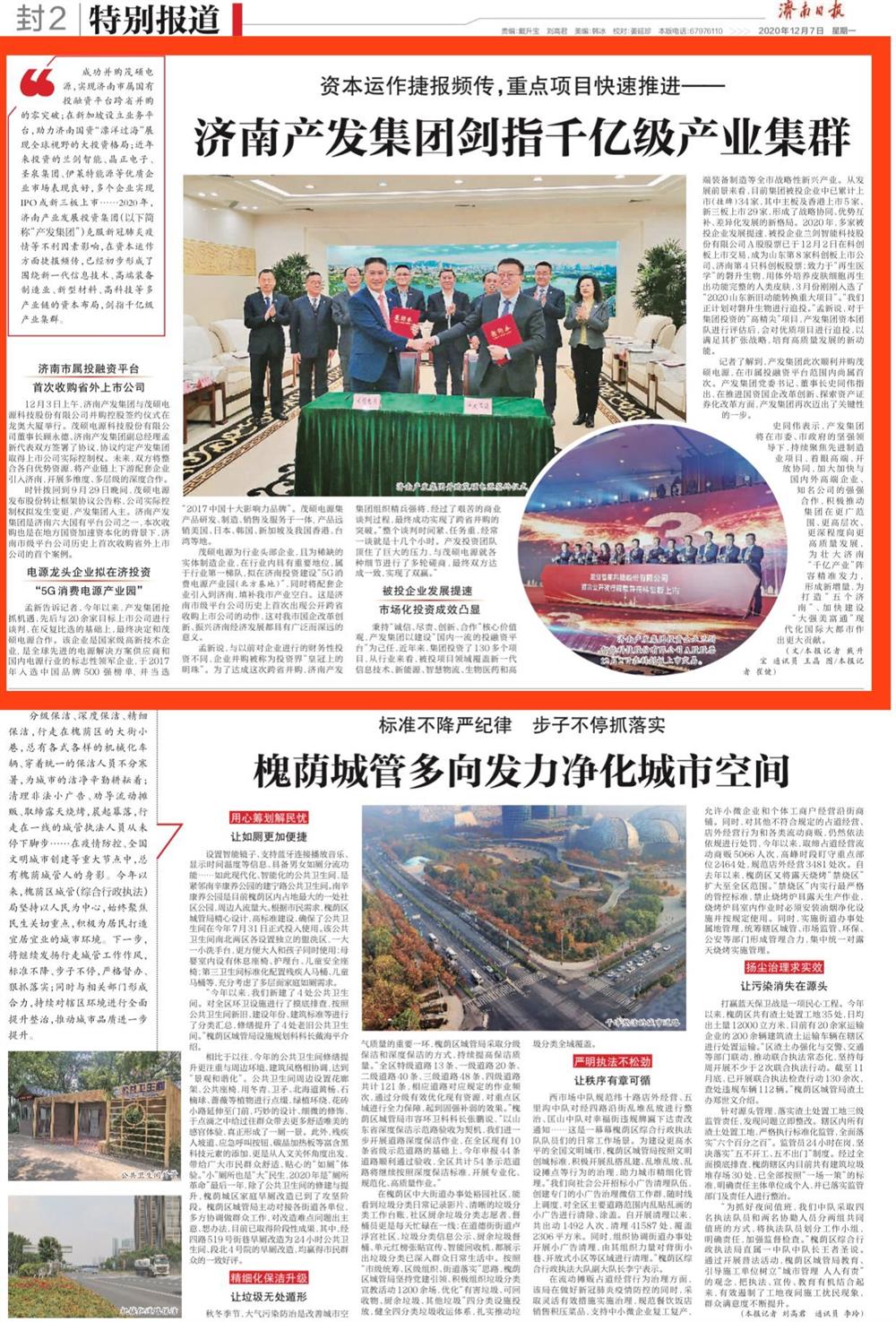 成功并購茂碩電源,實(shí)現(xiàn)濟(jì)南市屬國有投融資平臺(tái)跨省并購的零突破;在新加坡設(shè)立業(yè)務(wù)平臺(tái),助力濟(jì)南國資“漂洋過?!闭宫F(xiàn)全球視野的大投資格局;近年來投資的蘭劍智能、晶正電子、圣泉集團(tuán)、伊萊特能源等優(yōu)質(zhì)企業(yè)市場(chǎng)表現(xiàn)良好,多個(gè)企業(yè)實(shí)現(xiàn)IPO或新三板上市……2020年,濟(jì)南產(chǎn)業(yè)發(fā)展投資集團(tuán)(以下簡稱“產(chǎn)發(fā)集團(tuán)”)克服新冠肺炎疫情等不利因素影響,在資本運(yùn)作方面捷報(bào)頻傳,已經(jīng)初步形成了圍繞新一代信息技術(shù)、高端裝備制造業(yè)、新型材料、高科技等多產(chǎn)業(yè)鏈的資本布局,劍指千億級(jí)產(chǎn)業(yè)集群。